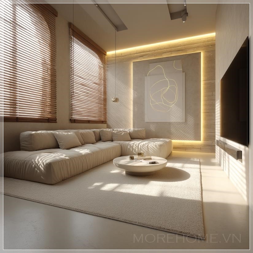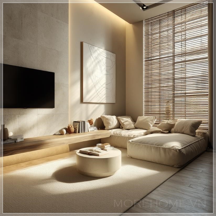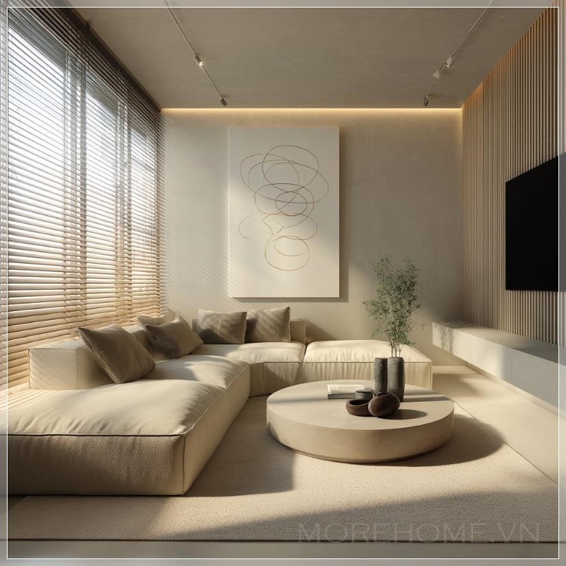 Phong cách tối giản không chỉ phù hợp với các không gian hiện đại mà còn có thể kết hợp dễ dàng với những yếu tố văn hóa Việt Nam. Những món đồ nội thất như sofa có thể được làm từ gỗ tự nhiên, mang lại sự gần gũi và ấm cúng cho không gian sống. Các gia đình Việt có thể dễ dàng kết hợp sofa với các chi tiết trang trí truyền thống như tranh gỗ, đồ gốm Bát Tràng hay những vật dụng thủ công từ làng nghề Đồng Kỵ, tạo nên sự hòa quyện giữa hiện đại và truyền thống.